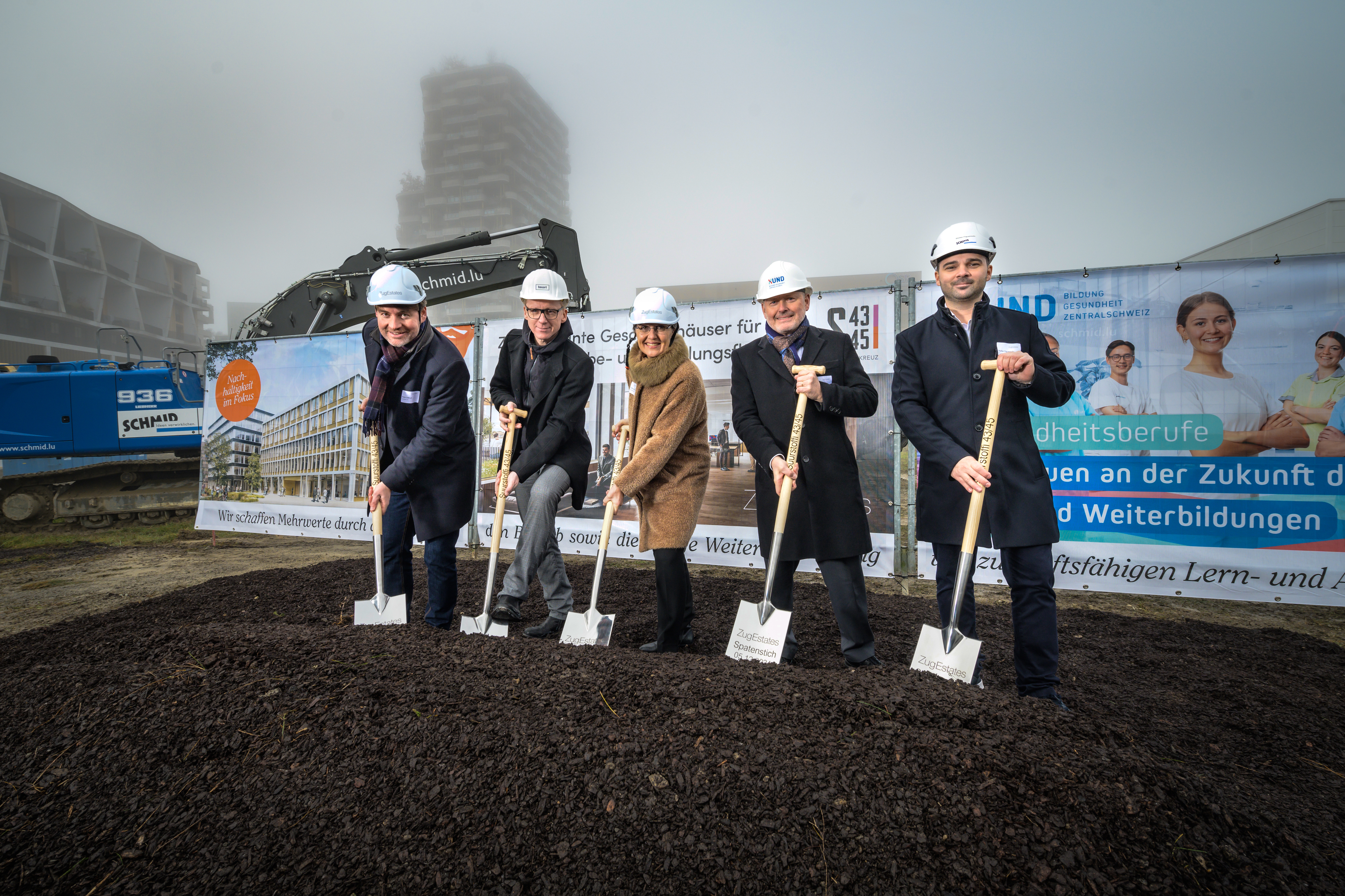 Together with representatives from local authorities and project partners, Zug Estates broke the ground for the new-build project S43/45 on the Suurstoffi site in Rotkreuz in Canton Zug.
